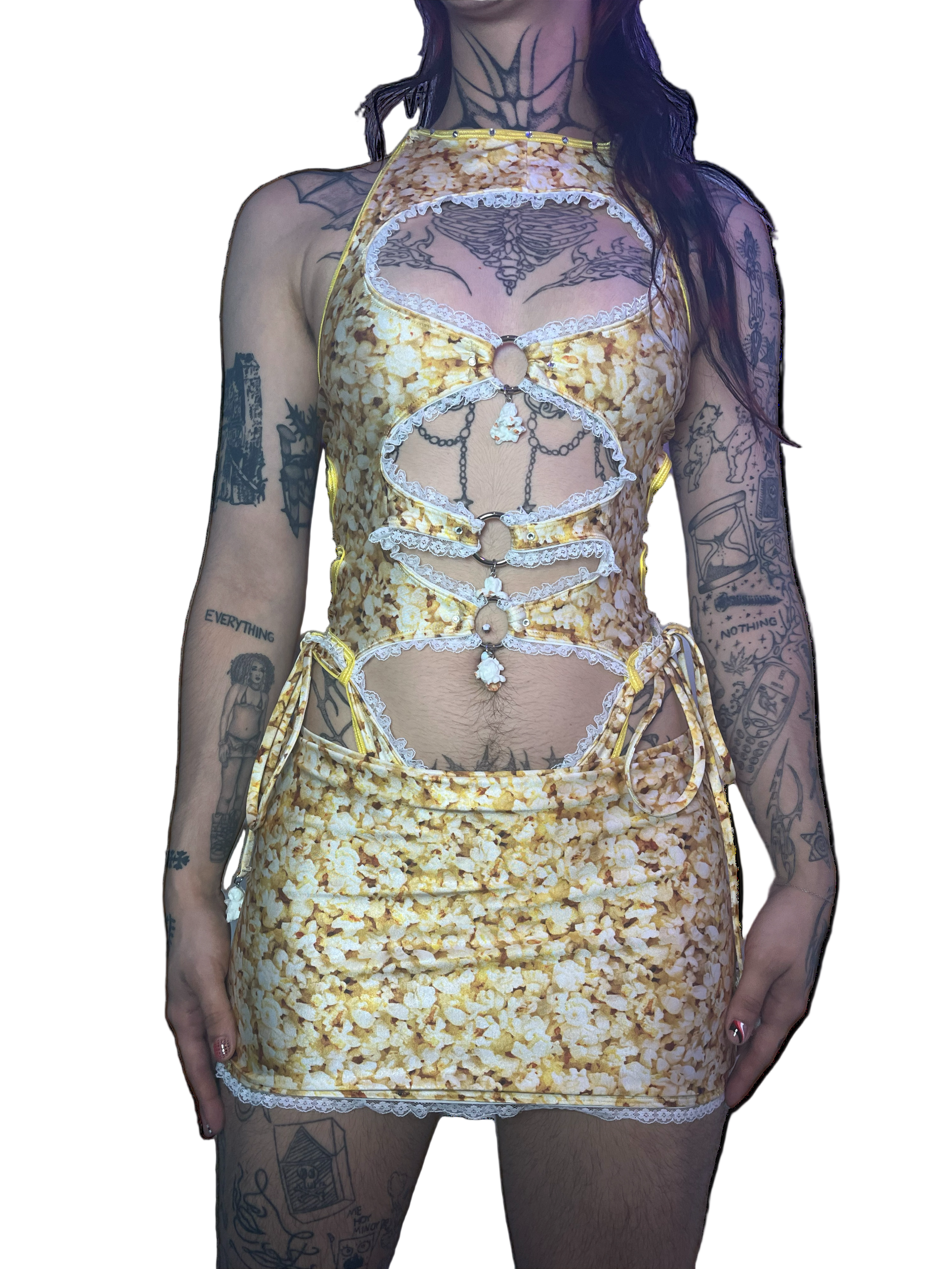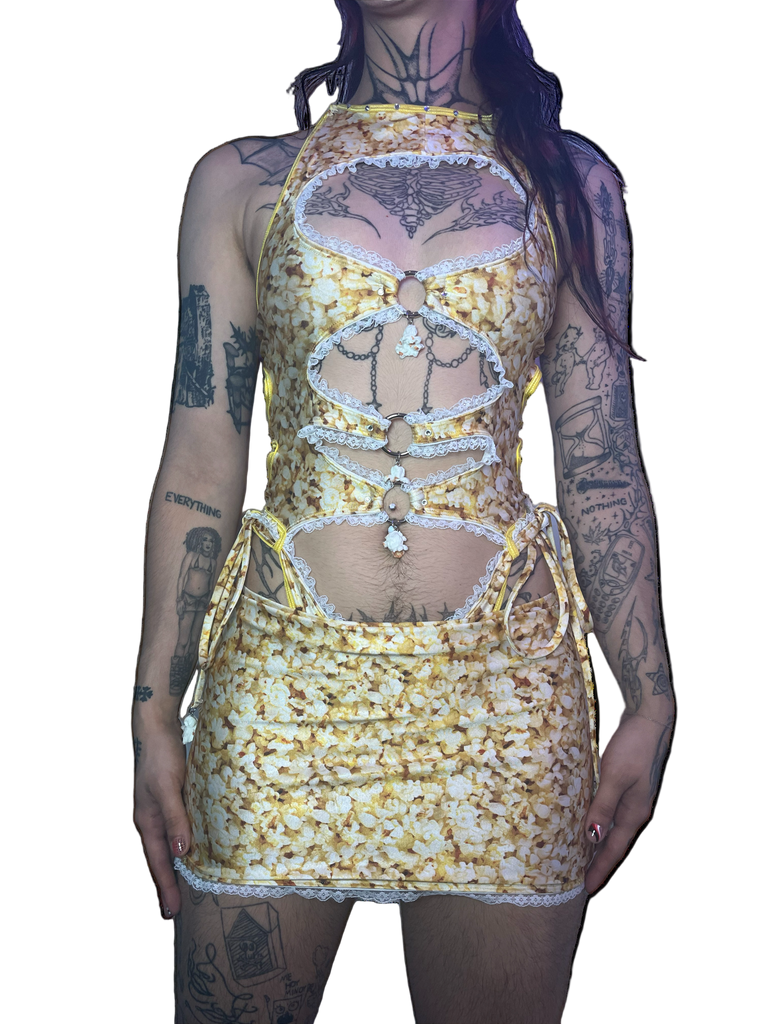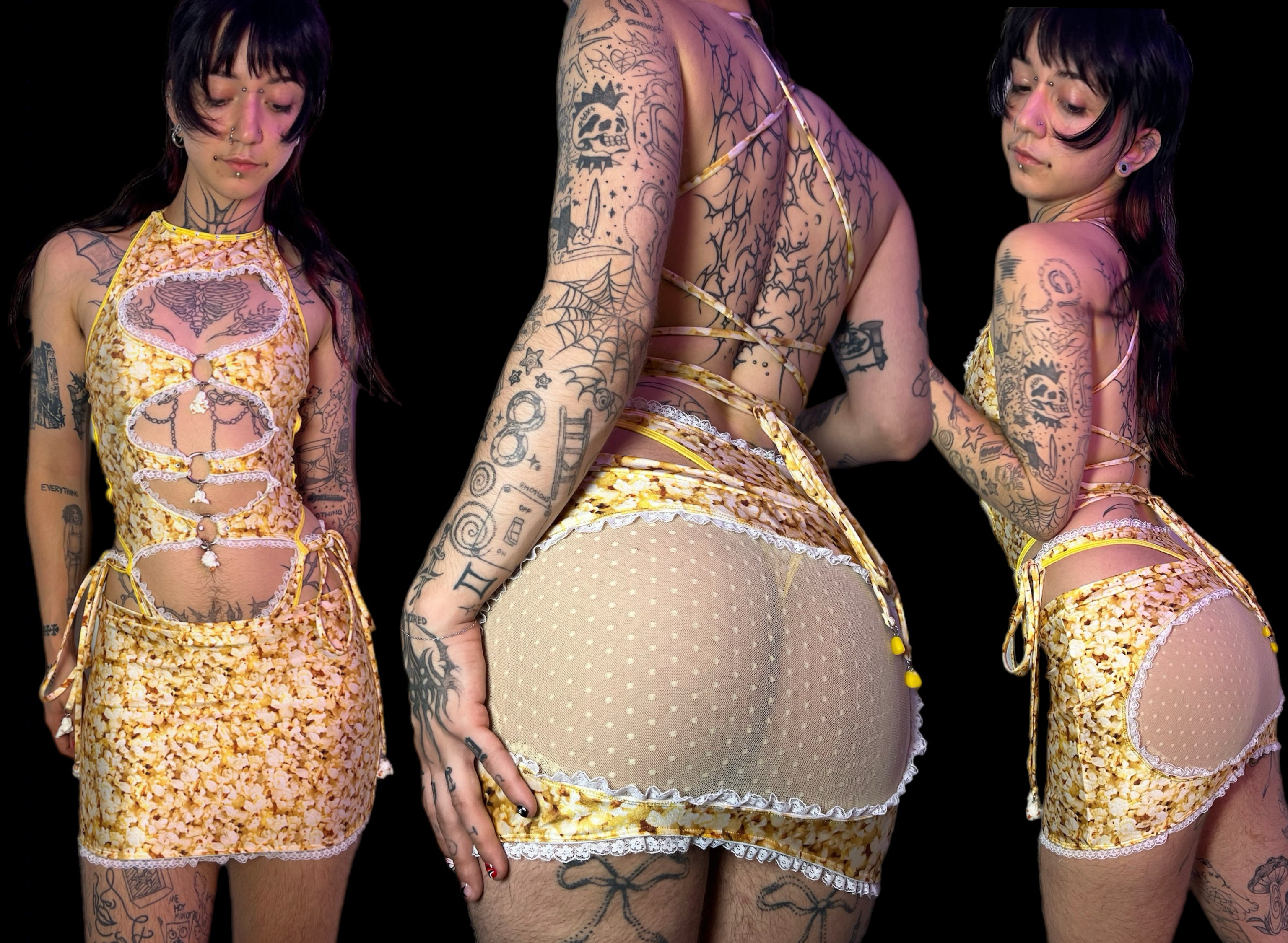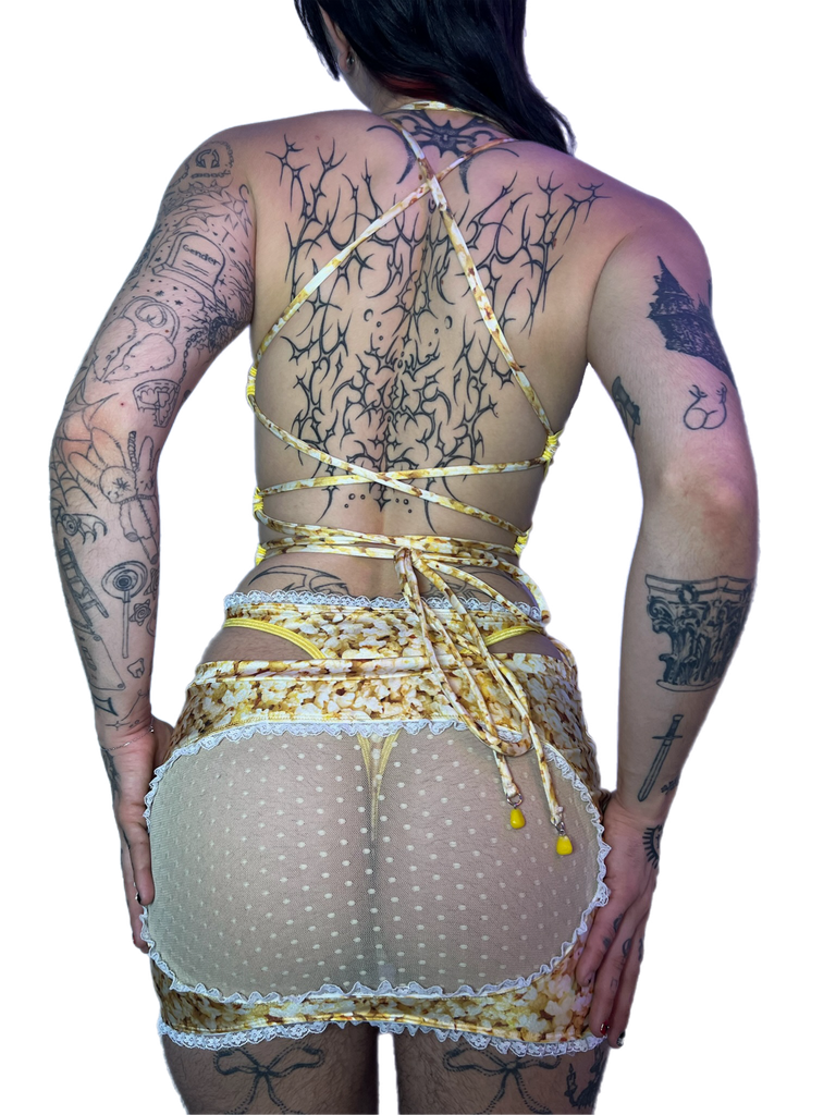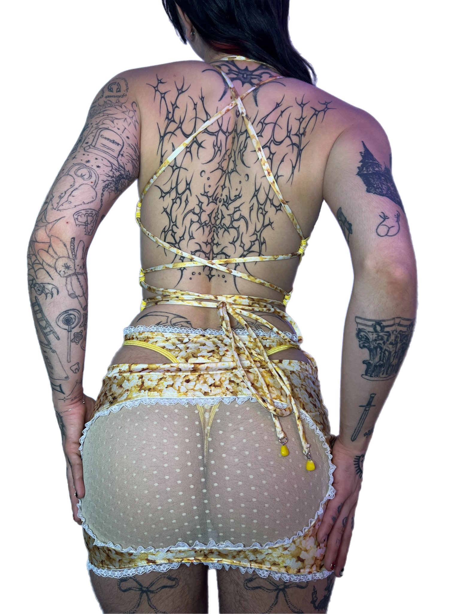 Popcorn Bikini & Matching Open Butt Skirt (S & Made to Order)